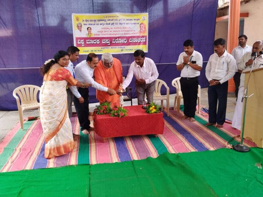ತುಮಕೂರು 1 ಜಿಲ್ಲೆಯ ತಿಪಟೂರು ತಾಲೂಕಿನ ರಂಗಾಪುರ ವಲಯದ ಶ್ರೀ ಗುರುಪರದೇಶಿಕೇಂದ್ರ ಮಠದ ಶ್ರೀ ಗುರುಪರದೇಶಿ ಮಹಾಸ್ವಾಮಿಗಳ ಸಮ್ಮುಖದಲ್ಲಿ ವಿಶ್ವ ಮಾದಕ ವಸ್ತು ವಿರೋದಿ ದಿನಾಚರಣೆ ಕಾರ್ಯಕ್ರಮ ನಡೆಯಿತು. ಕಾರ್ಯಕ್ರಮದಲ್ಲಿ ಬೆಂಗಳೂರು ಪ್ರಾದೇಶಿಕ ವಿಭಾಗದ ಗೌರವಾನ್ವಿತ ಪ್ರಾದೇಶಿಕ ನಿರ್ದೇಶಕರಾದ ಶ್ರೀಯುತ ಶೀನಪ್ಪ ಎಂ. ರವರು ದುಶ್ಚಟಮುಕ್ತ ಸಮಾಜದ ನಿರ್ಮಾಣಕ್ಕೆ ಪೂಜ್ಯ ಖಾವಂದರು ಅವಿರತ ಶ್ರಮಿಸುತ್ತಿದ್ದು ಧರ್ಮಸ್ಥಳ ಗ್ರಾಮಾಭಿವೃದ್ದಿ ಯೋಜನೆಯ ವತಿಯಿಂದ ಅಖಿಲ ಕರ್ನಾಟಕ ಜನಜಾಗೃತಿ ವೇದಿಕೆ ಟ್ರಸ್ಟ್(ರಿ.) ನ ಸಹಯೋಗದೊಂದಿಗೆ ಮದ್ಯವರ್ಜನ ಶಿಬಿರ, ಶಾಲೆಗಳಲ್ಲಿ ಸ್ವಾಸ್ತ್ಯಸಂಕಲ್ಪ ಕಾರ್ಯಕ್ರಮ ಹಾಗೂ ಆರೋಗ್ಯ ಶಿಬಿರಗಳನ್ನು ಏರ್ಪಡಿಸುವುದಲ್ಲದೇ ಮಾದಕ ವಸ್ತು ವಿರೋದಿ ದಿನದ ಆಚರಣೆಯ ಮುಖೇನ ಸಂಪನ್ಮೂಲ ವ್ಯಕ್ತಿಗಳಿಂದ ರಾಜ್ಯದ ಜನತೆಗೆ ದುಶ್ಚಟಗಳಿಂದ ಆಗುವ ದುಷ್ಪರಿಣಾಮಗಳ ಬಗ್ಗೆ ಅರಿವು ಮೂಡಿಸುವ ಕಾರ್ಯಕ್ರಮಗಳನ್ನು ರಾಜ್ಯಾದ್ಯಂತ ಕೈಗೊಳ್ಳಲಾಗಿದೆ ಎಂದು ತಿಳಿಸಿದರು. ಕಾರ್ಯಕ್ರಮದಲ್ಲಿ ತಾಲೂಕು ಯೋಜನಾಧಿಕಾರಿಗಳು, ಕೃಷಿ ಮೇಲ್ವಿಚಾರಕರು, ವಲಯ ಮೇಲ್ವಿಚಾರಕರು, ಶ್ರೀ ಗುರುಪರದೇಶಿ ಕೇಂದ್ರದ ಸಿಬ್ಬಂದಿ ವರ್ಗ, ಸೇವಾಪ್ರತಿನಿಧಿ, ಸ್ವಸಹಾಯ, ಜ್ಞಾನವಿಕಾಸ ಹಾಗೂ ಪ್ರಗತಿಬಂಧು ಪಾಲುದಾರ ಬಂದುಗಳು, ಗ್ರಾಮಸ್ಥರು ಹಾಗೂ ವಿದ್ಯಾರ್ಥಿಗಳು ಉಪಸ್ಥಿತರಿದ್ದರು.