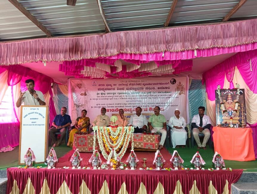 ಕೊಪ್ಪಳ ಪ್ರಾದೇಶಿಕ ವಿಭಾಗದ ಬಾಗಲಕೋಟೆ ತಾಲೂಕಿನ ಅನವಾಲ ಶ್ರೀ ಶ್ರದ್ದಾನಂದ ಮಹಾಸ್ವಾಮಿಗಳ ಜನ್ಮಸ್ಥಳವಾದ ಪೂರ್ಣಾನಂದ ಆಶ್ರಮದಲ್ಲಿ 1810 ನೇ ಮಧ್ಯವರ್ಜನ ಶಿಬಿರದ ಉದ್ಘಾಟನಾ ಕಾರ್ಯಕ್ರಮ ನೆರವೇರಿತು. ಶ್ರೀ ಪರಮ ಪೂಜ್ಯ ಡಾಕ್ಟರ್ ಕೈಲಾಸಪತಿ ಮಹಾಸ್ವಾಮಿಗಳು ಶ್ರದ್ದಾನಂದಮಠ ಅನವಾಲ ದೀಪವನ್ನು ಉದ್ದೀಪನ ಮಾಡುವುದರೊಂದಿಗೆ ಕಾರ್ಯಕ್ರಮಕ್ಕೆ ಚಾಲನೆ ನೀಡಿದರು. ಕಾರ್ಯಕ್ರಮದಲ್ಲಿ ಶ್ರೀ ಕ್ಷೇತ್ರ ಧರ್ಮಸ್ಥಳ ಗ್ರಾಮಾಭಿವೃದ್ಧಿ ಯೋಜನೆ ಜಿಲ್ಲಾ ನಿರ್ದೇಶಕರಾದ ಶ್ರೀ ಚೆನ್ನಕೇಶವ ರವರು ಕಾರ್ಯಕ್ರಮದ ಬಗ್ಗೆ, ಯೋಜನೆಯ ಬಗ್ಗೆ ಮಾಹಿತಿ ಮತ್ತು ಮಾರ್ಗದರ್ಶನ ನೀಡಿದರು. ಜನಜಾಗೃತಿ ಕೊಪ್ಪಳ ಪ್ರಾದೇಶಿಕ ವಿಭಾಗದ ಯೋಜನಾಧಿಕಾರಿಗಳಾದ ಶ್ರೀಯುತ ನಾಗೇಶ್ ರವರು ಪ್ರಾಸ್ತಾವಿಕ ಮಾಹಿತಿಯೊಂದಿಗೆ ವಿಚಾರ ತಿಳಿಸಿದರು. ಈ ಸಂದರ್ಭದಲ್ಲಿ ವೇದಿಕೆಯಲ್ಲಿ ಶ್ರೀ ಅನಿಲ್ ಕುಮಾರ್ ದೇಸಾಯಿ ಅಧ್ಯಕ್ಷರು ವ್ಯವಸ್ಥಾಪನ ಸಮಿತಿ, ಶ್ರೀ ಶ್ರೀಕಾಂತ ಎಸ್. ಸಂದಿಮನಿ ಅಧ್ಯಕ್ಷರು ಜಿಲ್ಲಾ ಜನಜಾಗೃತಿ ವೇದಿಕೆ ಬಾಗಲಕೋಟೆ, ಶ್ರೀ ರವೀಂದ್ರ ವಂದಕುದರಿ ಜಿಲ್ಲಾ ಜನಜಾಗೃತಿ ವೇದಿಕೆ ಮಾಜಿ ಅಧ್ಯಕ್ಷರು, ಶ್ರೀ ಹನುಮಂತಪ್ಪ ಹೊಸಕೋಟಿ ಸದಸ್ಯರು ಜಿಲ್ಲಾ ಜನಜಾಗೃತಿ ವೇದಿಕೆ, ಶ್ರೀಮತಿ ನೀಲಮ್ಮ ಕೊಳೂರು ಗ್ರಾಮ ಪಂಚಾಯತ್ ಅಧ್ಯಕ್ಷರು ಅನವಾಲ, ಶ್ರೀ ಬಸವರಾಜ್ ಅಂಗಡಿ ಯೋಜನಾಧಿಕಾರಿಗಳು ಬಾಗಲಕೋಟೆ, ವಲಯ ಮೇಲ್ವಿಚಾರಕರು ಅರುಣ್ ಉಪಸ್ಥಿತರಿದ್ದರು.