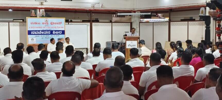 ಉಡುಪಿ ಜಿಲ್ಲಾ ಪೊಲೀಸ್, ಶ್ರೀ ಧರ್ಮಸ್ಥಳ ಮಂಜುನಾಥೇಶ್ವರ ಯೋಗ ಮತ್ತು ಪ್ರಕೃತಿ ಚಿಕಿತ್ಸಾ ಆಸ್ಪತ್ರೆ, ಸೌಖ್ಯವನ ಇವರ ಸಹಭಾಗಿತ್ವದಲ್ಲಿ ಇಂದು ಉಡುಪಿ ಜಿಲ್ಲೆಯ ಪೊಲೀಸ್ ಸಿಬ್ಬಂದಿಗಳಿಗೆ ವ್ಯಸನ ಮುಕ್ತ ಸ್ವಸ್ಥ ಸಮಾಜ ನಿರ್ಮಾಣದಲ್ಲಿ ಪೊಲೀಸರ ಪಾತ್ರ ಎನ್ನುವ ವಿಷಯವಾಗಿ ಉಡುಪಿಯ ಸೌಖ್ಯ ವನದಲ್ಲಿ ವಿಶೇಷ ಜಾಗೃತಿ ಕಾರ್ಯಕ್ರಮ ನಡೆಯಿತು.ಜನಜಾಗೃತಿ ಪ್ರಾದೇಶಿಕ ವಿಭಾಗದ ಪ್ರಾದೇಶಿಕ ನಿರ್ದೇಶಕರಾದ ಶ್ರೀ ವಿವೇಕ್ ವಿ. ಪಾಯ್ಸ್ ರವರು ಮಾತನಾಡಿ ಜೀವನದ ಪ್ರಥಮ ಪಾಠ ಆತ್ಮರಕ್ಷಣೆ, ಎರಡನೇಯದು ಜೀವ ರಕ್ಷಣೆ, ಪ್ರಾಣಿಪಕ್ಷಿಗಳು ಪ್ರಕೃತಿ ದತ್ತವಾಗಿ ಬದುಕುತ್ತವೆ, ಮನುಷ್ಯರು ವಿಕೃತಿ ದತ್ತವಾಗಿ ಬದುಕುವುದು ಕಾಣುತ್ತಿದ್ದೇವೆ. ಮರಳಿ ಪ್ರಕೃತಿಗೆ ಹೋದರೆ ಮಾತ್ರ ನಾವು ಬದುಕುತ್ತೇವೆ. ವಿಕೃತಿ ಕಡೆಗೆ ಹೋದರೆ ಬದುಕು ಕಷ್ಟ ಎಂದರು.ಎಲ್ಲಾ ಧರ್ಮ ಗ್ರಂಥಗಳಲ್ಲಿ ವ್ಯಸನ ಮಾಡಬಾರದು ಎಂದೇ ಹೇಳುತ್ತದೆ. ಮದ್ಯಪಾನ ಮಾಡುವವರಿಗೆ ಅಕಾಲಿಕ ಮರಣ, ಅಪಘಾತ, ಆತ್ಮಹತ್ಯೆ ಕಟ್ಟಿಟ್ಟ ಬುತ್ತಿ. ಕುಡಿಯುವುದು ಭ್ರಮೆ ಉಂಟುಮಾಡುತ್ತದೆ. ಮದ್ಯಪಾನ ದೇಹದ ಎಲ್ಲಾ ಭಾಗಗಳಿಗೆ ಹಾನಿ ಉಂಟುಮಾಡುತ್ತದೆ ಎಂದರು. ಉಡುಪಿ ಜಿಲ್ಲೆಯ 100 ಮಂದಿ ಪೊಲೀಸ್ ಸಿಬ್ಬಂದಿಗಳು ಕಾರ್ಯಕ್ರಮದಲ್ಲಿ ಭಾಗವಹಿಸಿದ್ದರು.