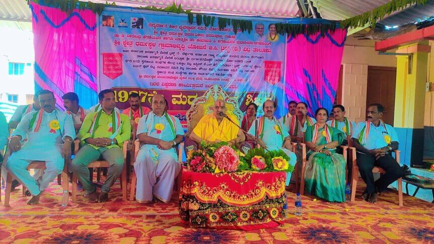 ವಿಟ್ಲ ತಾಲೂಕಿನ ಶ್ರೀ ದುರ್ಗಾಪರಮೇಶ್ವರಿ ದೇವಸ್ಥಾನ ಮೋಂತಿಮಾರು ಮಂಚಿನಲ್ಲಿ ನಡೆಯುತ್ತಿರುವ 1937ನೇ ಮದ್ಯವರ್ಜನ ಶಿಬಿರದ ಸಮಾರೋಪ ಸಮಾರಂಭದಲ್ಲಿ ಶ್ರೀ ಶ್ರೀ ಶ್ರೀ ಮೋಹನದಾಸ ಪರಮಹಂಸ ಸ್ವಾಮೀಜಿ, ಶ್ರೀ ಮಹಾಲಕ್ಷ್ಮಿ ಕ್ಷೇತ್ರ ಶ್ರೀಧಾಮ ಮಾಣಿಲ ರವರು ಭಾಗವಹಿಸಿದ ಶಿಬಿರಾರ್ಥಿಗಳಿಗೆ ಆಶೀರ್ವದಿಸಿದರು.