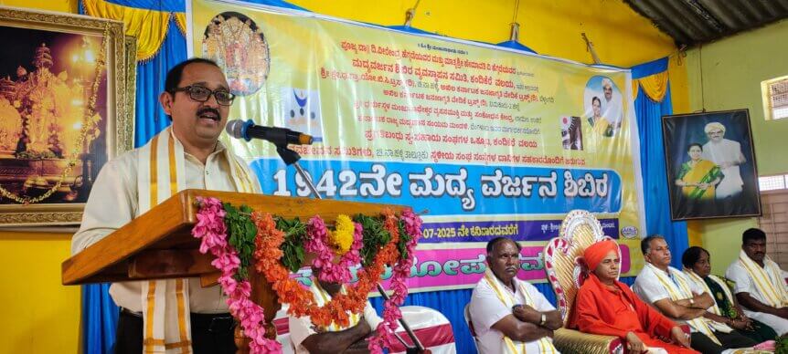 ಬೆಂಗಳೂರು ಪ್ರಾದೇಶಿಕ ವಿಭಾಗದ ತುಮಕೂರು-2 ಜಿಲ್ಲೆಯ ಚಿಕ್ಕನಾಯಕನಹಳ್ಳಿ ಯೋಜನಾ ಕಛೇರಿವ್ಯಾಪ್ತಿಯ ಸಾದರಹಳ್ಳಿ ಕಾರ್ಯ ಕ್ಷೇತ್ರದ ಶ್ರೀ ಲಕ್ಷ್ಮಿರಂಗನಾಥ ಸ್ವಾಮಿ ಕಲ್ಯಾಣ ಮಂಟಪದಲ್ಲಿ ನಡೆಯುತ್ತಿರುವ 1942ನೇ ಮದ್ಯವರ್ಜನ ಶಿಬಿರದ ಸಮಾರೋಪ ಸಮಾರಂಭದಲ್ಲಿ ಬೆಂಗಳೂರು ಪ್ರಾದೇಶಿಕ ವಿಭಾಗದ ಗೌರವಾನ್ವಿತ ಪ್ರಾದೇಶಿಕ ನಿರ್ದೇಶಕರಾದ ಶ್ರೀಯುತ ಶೀನಪ್ಪ ಎಂ ಸರ್ ರವರು ಶ್ರೀ ಕ್ಷೇತ್ರ ಧರ್ಮಸ್ಥಳ ಗ್ರಾಮಾಭಿವೃದ್ದಿ ಯೋಜನೆಯ ಕಾರ್ಯಕ್ರಮಗಳು ಹಾಗೂ ಜನಜಾಗೃತಿ ವೇದಿಕೆಯ ಕಾರ್ಯಕ್ರಮಗಳಬಗ್ಗೆ ಮತ್ತು ಶಿಬಿರಕ್ಕೆ ಸೇರಿ ಪಾನಮುಕ್ತರಾಗಿ ಸಾಧನೆ ಮಾಡಿರುವಂತಹ ನವಜೀವನ ಸಮಿತಿ ಸದಸ್ಯರ ಯಶೋಗಾಥೆಗಳಬಗ್ಗೆ ತಿಳಿಸಿ ಶಿಬಿರಾರ್ಥಿಗಳು ಹಾಗೂ ಶಿಬಿರಾರ್ಥಿಗಳ ಕುಟುಂಬಸ್ಥರಿಗೆ ಮಾಹಿತಿ ಮತ್ತು ಮಾರ್ಗದರ್ಶನ್ನು ನೀಡಿದರು.