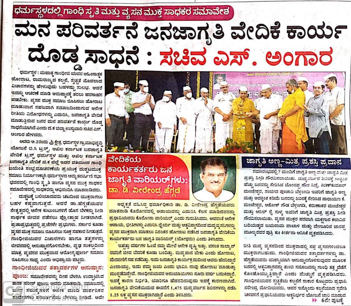 ಅಖಿಲ ಕರ್ನಾಟಕ ಜನಜಾಗೃತಿ ವೇದಿಕೆಯಿಂದ ಪತ್ರಿಕಾಗೋಷ್ಠಿ : ಅಕ್ಟೋಬರ್ 2 ರಂದು ಗಾಂಧೀ ಜಯಂತಿ ಸಂಭ್ರಮಾಚರಣೆಯ ಪ್ರಯುಕ್ತ ದುಶ್ಚಟಮುಕ್ತ ಸಮಾಜ ನಿರ್ಮಾಣಕ್ಕಾಗಿ ಗಾಂಧೀ ಸ್ಮೃತಿ ಮತ್ತು ವ್ಯಸನಮುಕ್ತ ಸಾಧಕರ ಸಮಾವೇಶ.
