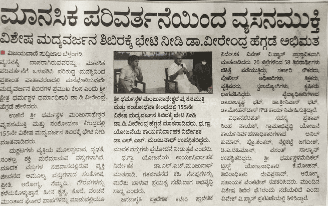 155 ನೇ ವಿಶೇಷ ಮದ್ಯವರ್ಜನ ಶಿಬಿರ