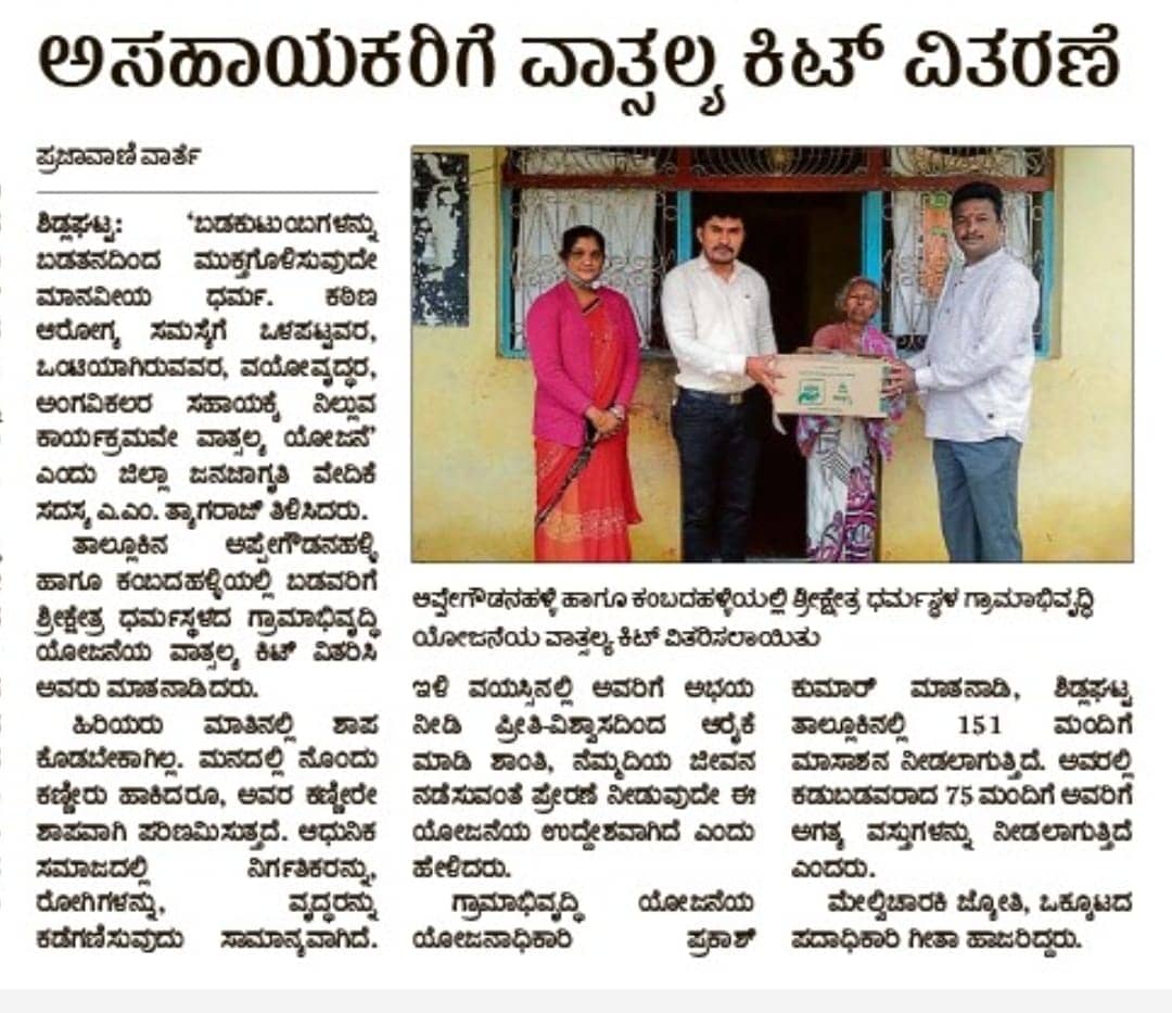 ಅಸಹಾಯಕರಿಗೆ ವಾತ್ಸಲ್ಯ ಕಿಟ್ ವಿತರಣೆ