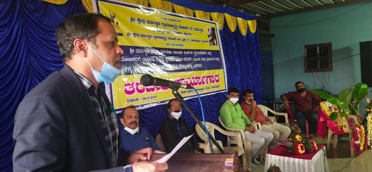 Sri M Girishnandan AC from sakleshpur addressing members of Sri dharmasthala disaster management team.
