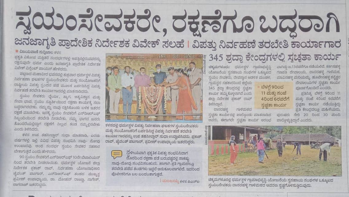 ವಿಪತ್ತು ನಿರ್ವಹಣೆಗಾಗಿ ಸ್ವಯಂ ಸೇವಕರ ತಂಡ ರಚನೆ