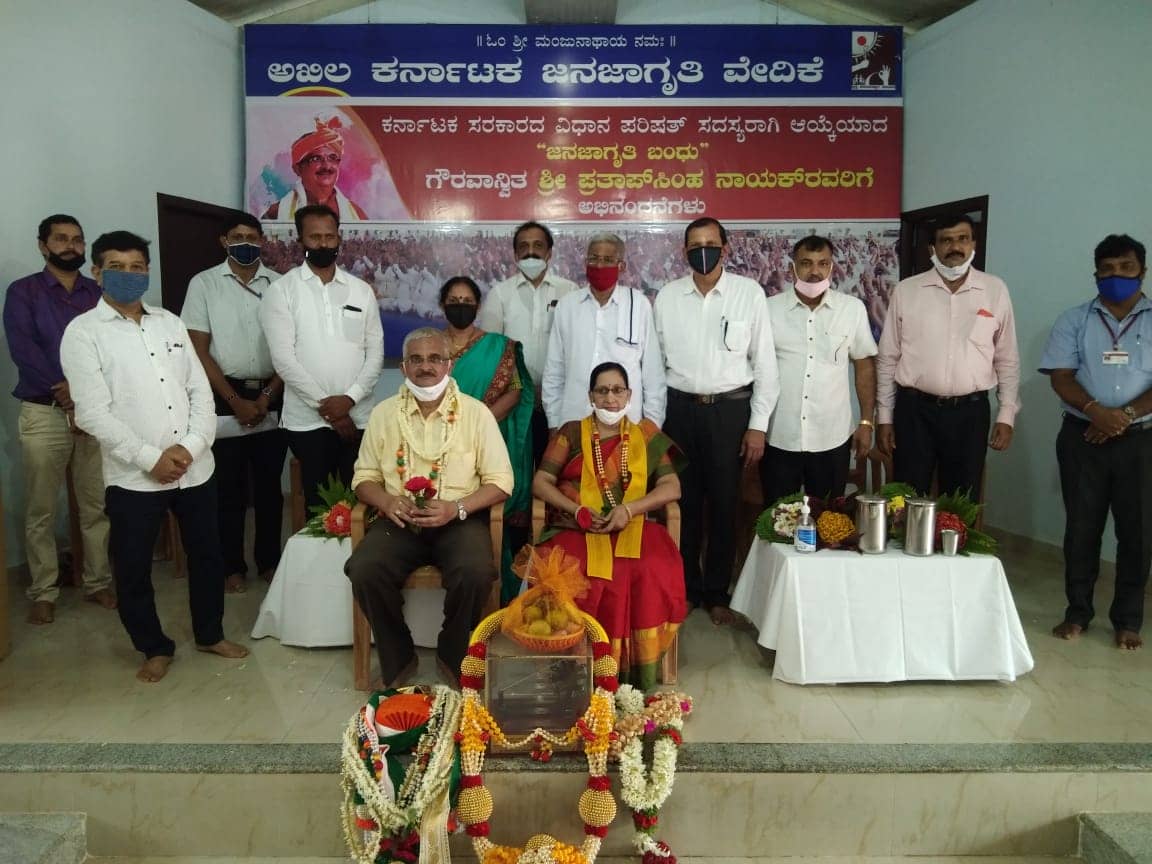 ವಿಧಾನ ಪರಿಷತ್ ಸದಸ್ಯರಾಗಿ ಆಯ್ಕೆಯಾದ ಜನ ಜಾಗೃತಿ ವೇದಿಕೆಯ ಮಾಜಿ ಅಧ್ಯಕ್ಷರಾದ ಶ್ರೀ ಪ್ರತಾಪ್ ಸಿಂಹ ನಾಯಕ್ ರವರಿಗೆ ಜನ ಜಾಗೃತಿ ವೇದಿಕೆಯಿಂದ ಅಭಿನಂದನಾ ಸಮಾರಂಭ