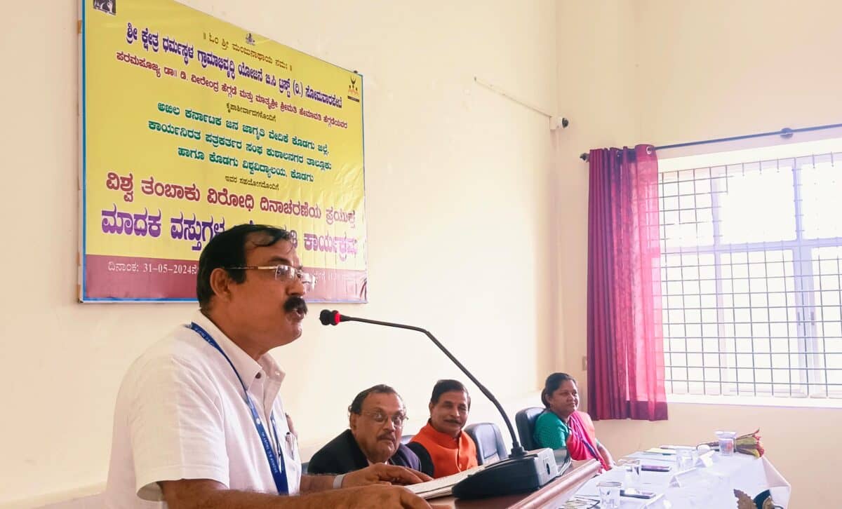 ಕೊಡಗು ಜಿಲ್ಲೆಯ ಕೊಡಗು ವಿಶ್ವವಿದ್ಯಾನಿಲಯದಲ್ಲಿ ವಿಶ್ವ ತಂಬಾಕು ವಿರೋಧಿ ದಿನಾಚರಣೆಯ ಪ್ರಯುಕ್ತ ಮಾದಕ ವಸ್ತುಗಳ ದುಷ್ಪರಿಣಾಮದ ಬಗ್ಗೆ ಜಾಗೃತಿ ಮೂಡಿಸುವ ಕಾರ್ಯಕ್ರಮ