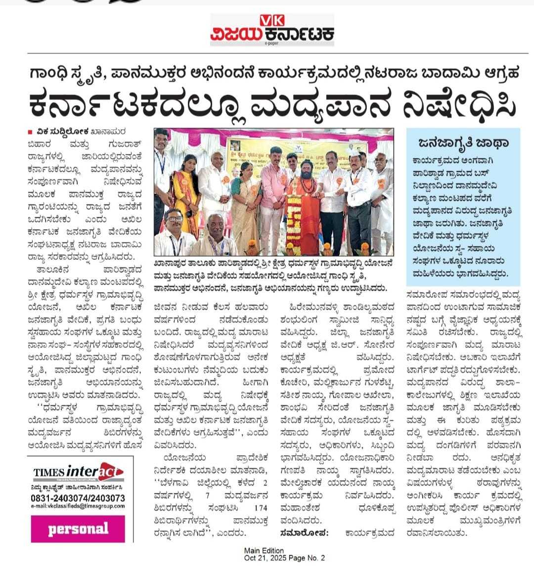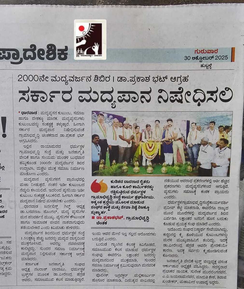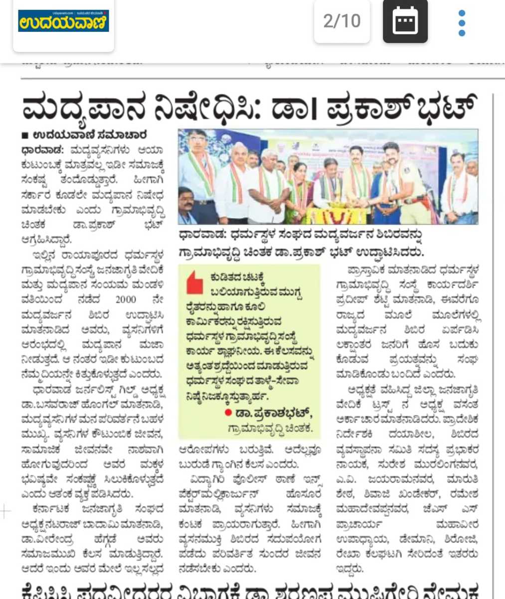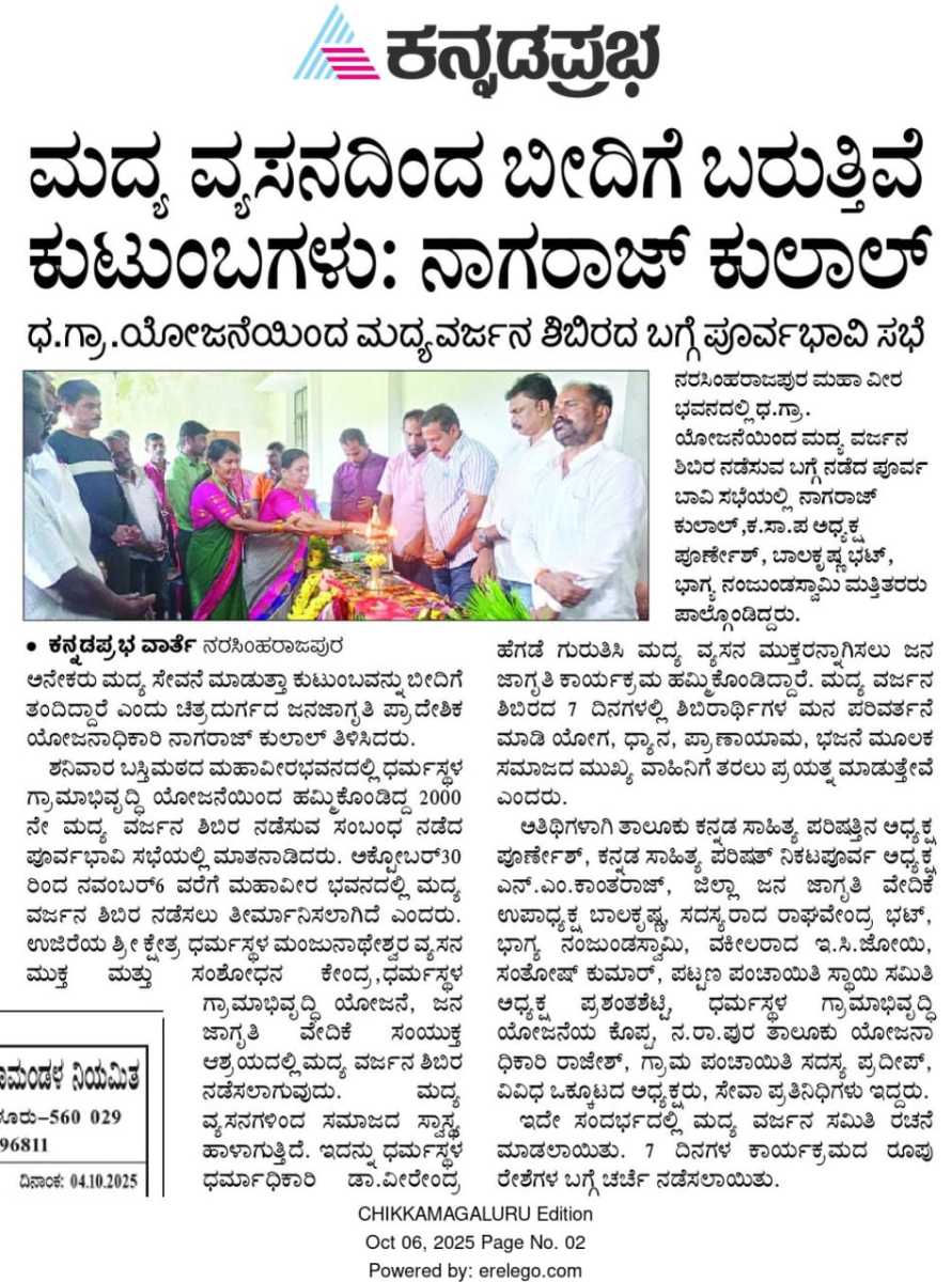 Iam very glad that Janajagruthi Vedike is successfully completing 25 years. It is a sign of progress that this Forum started in 1991 to eradicate bad habits like addiction to liquor has spread throughout the state. Many people joined hands for this purpose and that is how the Forum could achieve this. The path that the Forum has trodden is hard.