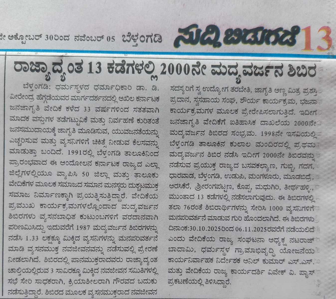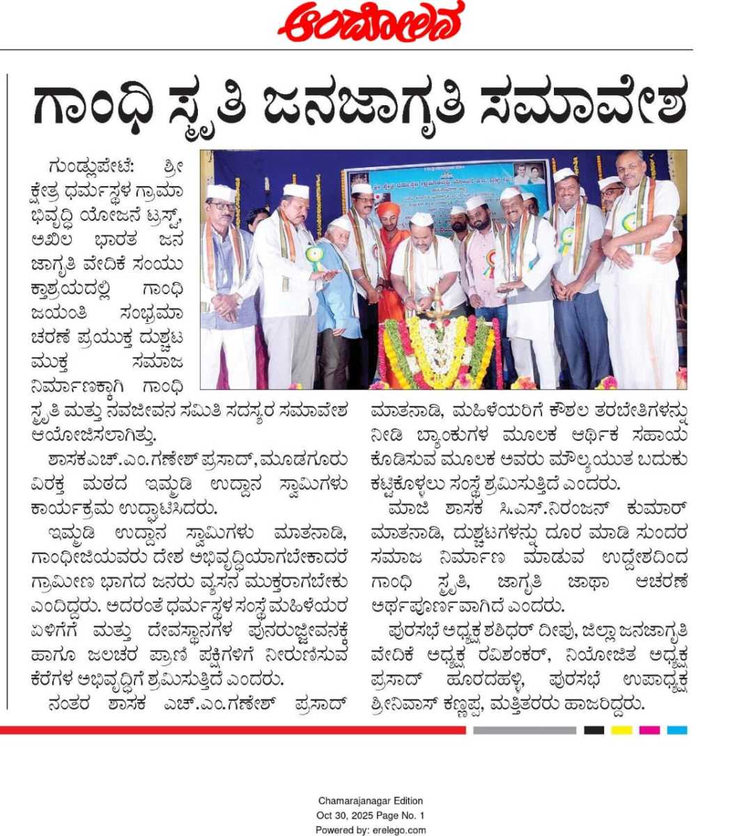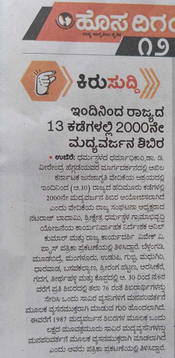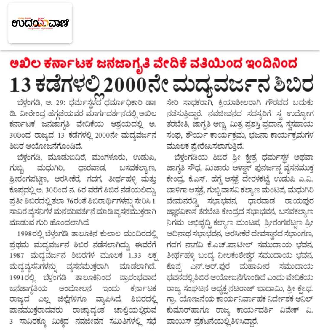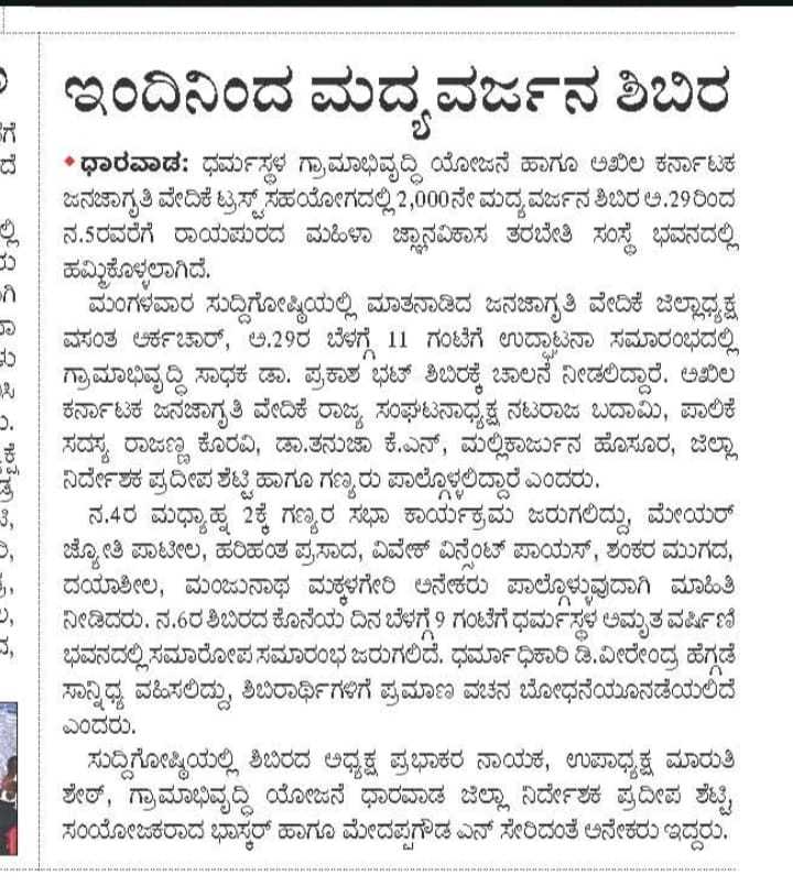 Iam very glad that Janajagruthi Vedike is successfully completing 25 years. It is a sign of progress that this Forum started in 1991 to eradicate bad habits like addiction to liquor has spread throughout the state. Many people joined hands for this purpose and that is how the Forum could achieve this. The path that the Forum has trodden is hard.