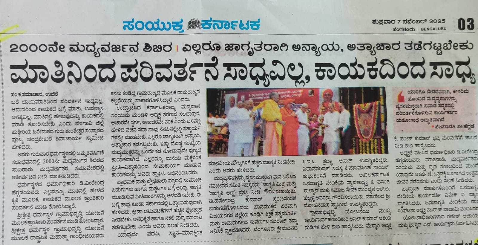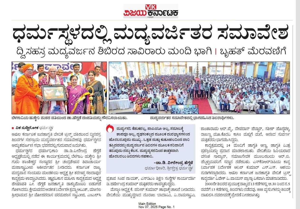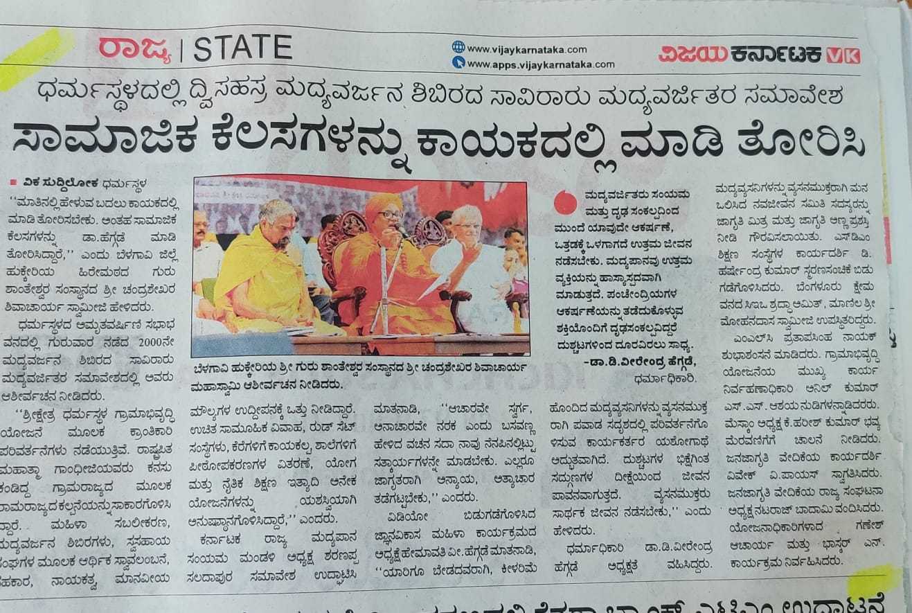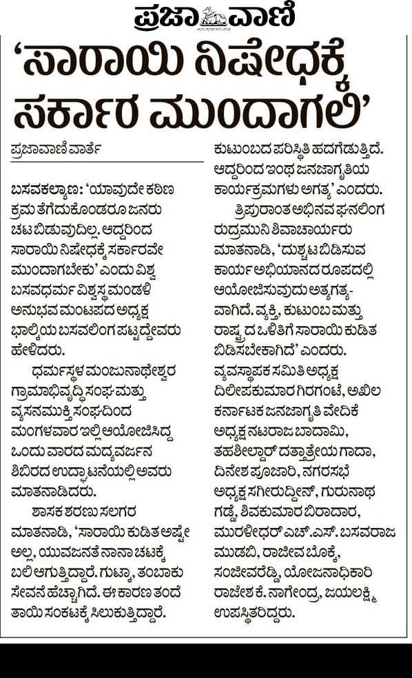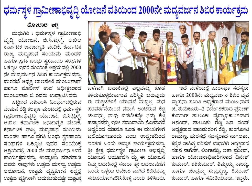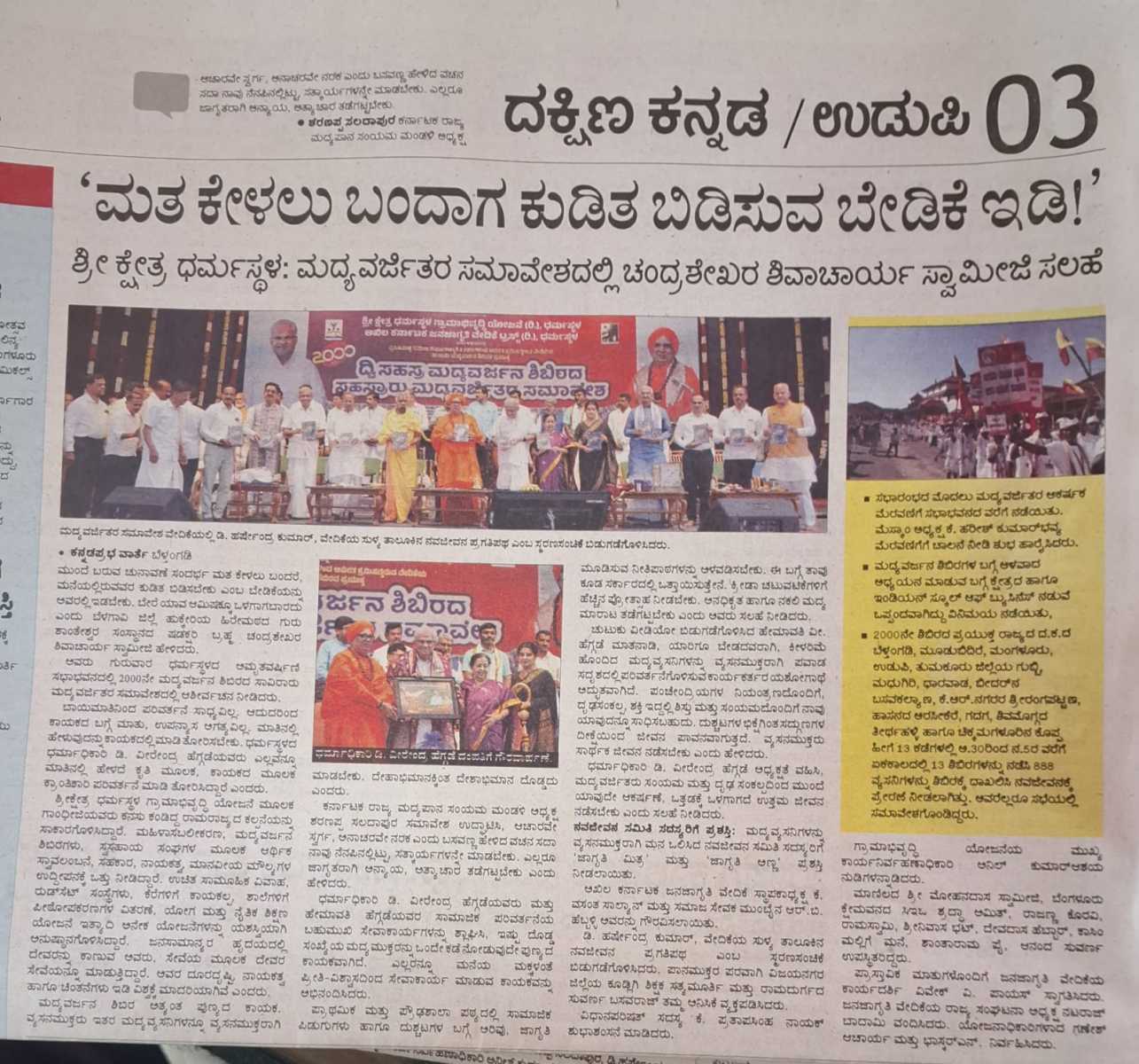 Iam very glad that Janajagruthi Vedike is successfully completing 25 years. It is a sign of progress that this Forum started in 1991 to eradicate bad habits like addiction to liquor has spread throughout the state. Many people joined hands for this purpose and that is how the Forum could achieve this. The path that the Forum has trodden is hard.