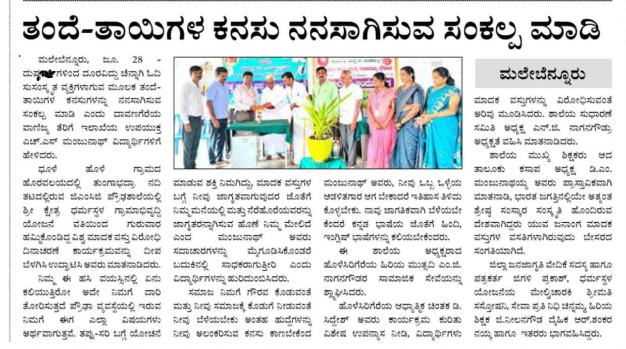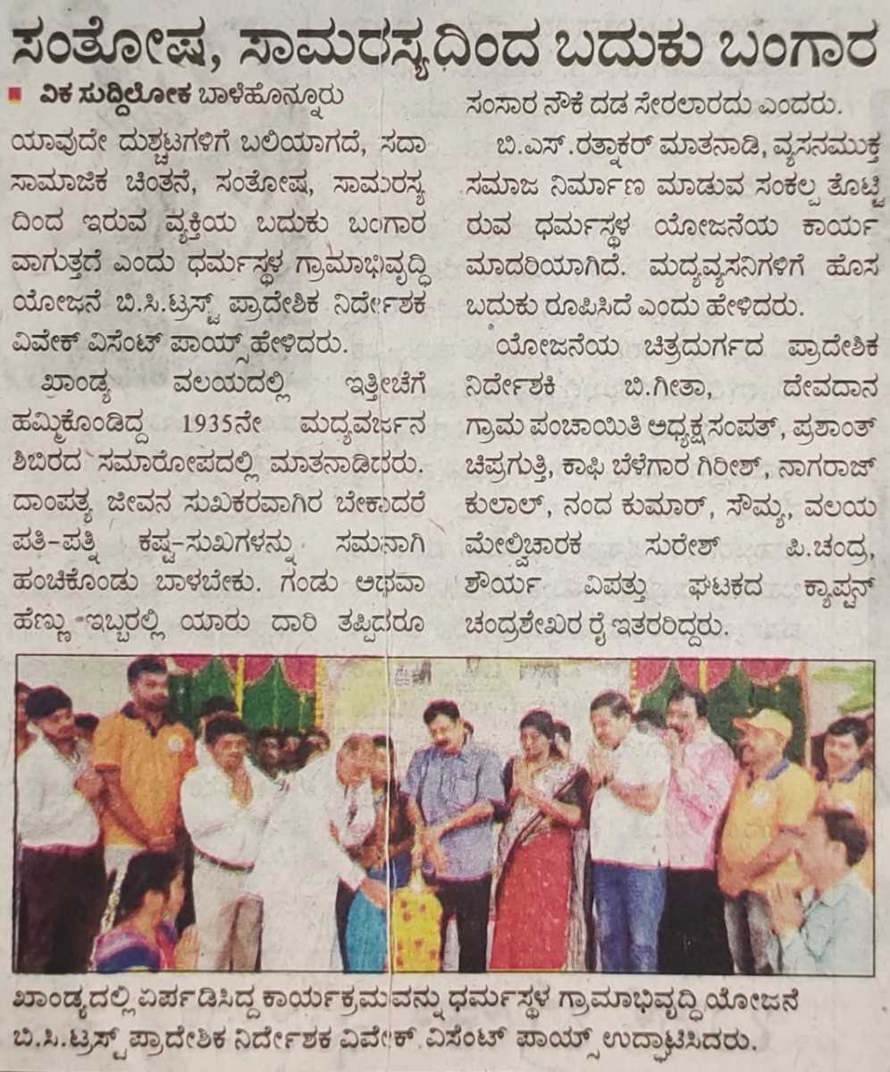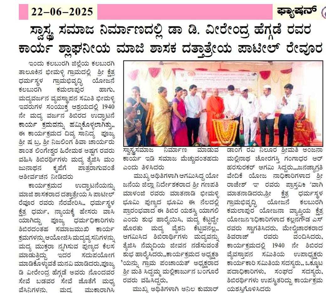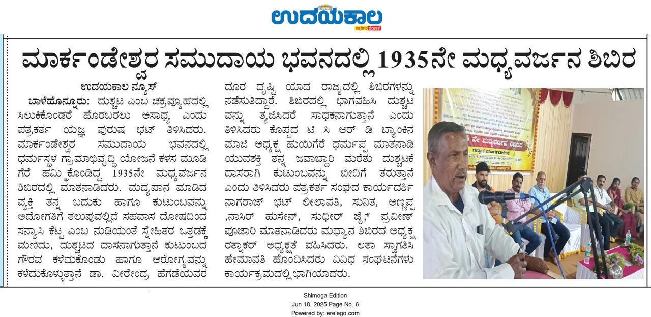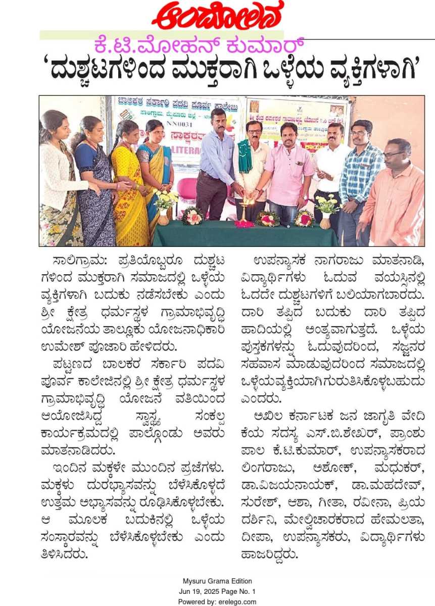 Iam very glad that Janajagruthi Vedike is successfully completing 25 years. It is a sign of progress that this Forum started in 1991 to eradicate bad habits like addiction to liquor has spread throughout the state. Many people joined hands for this purpose and that is how the Forum could achieve this. The path that the Forum has trodden is hard.