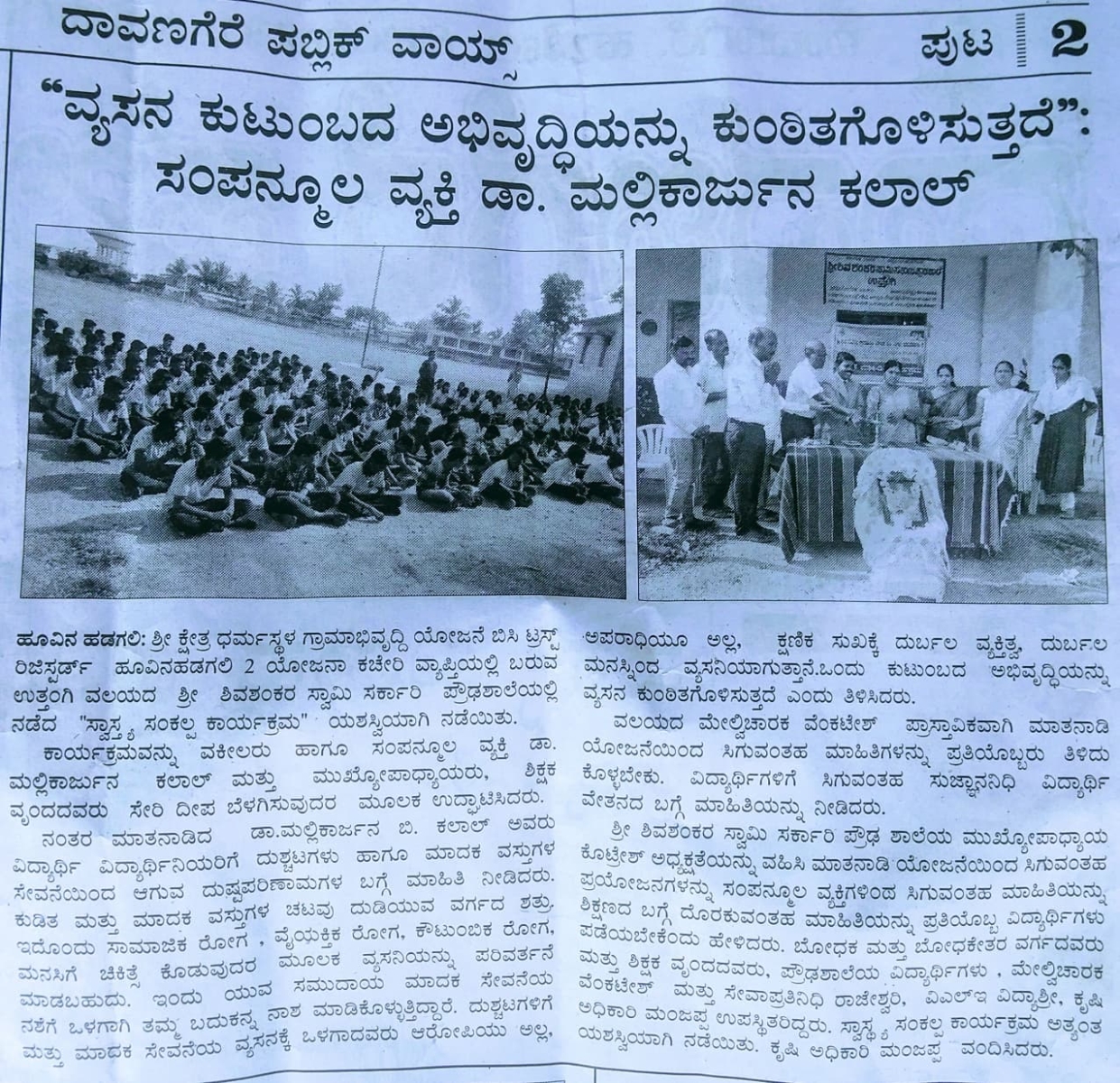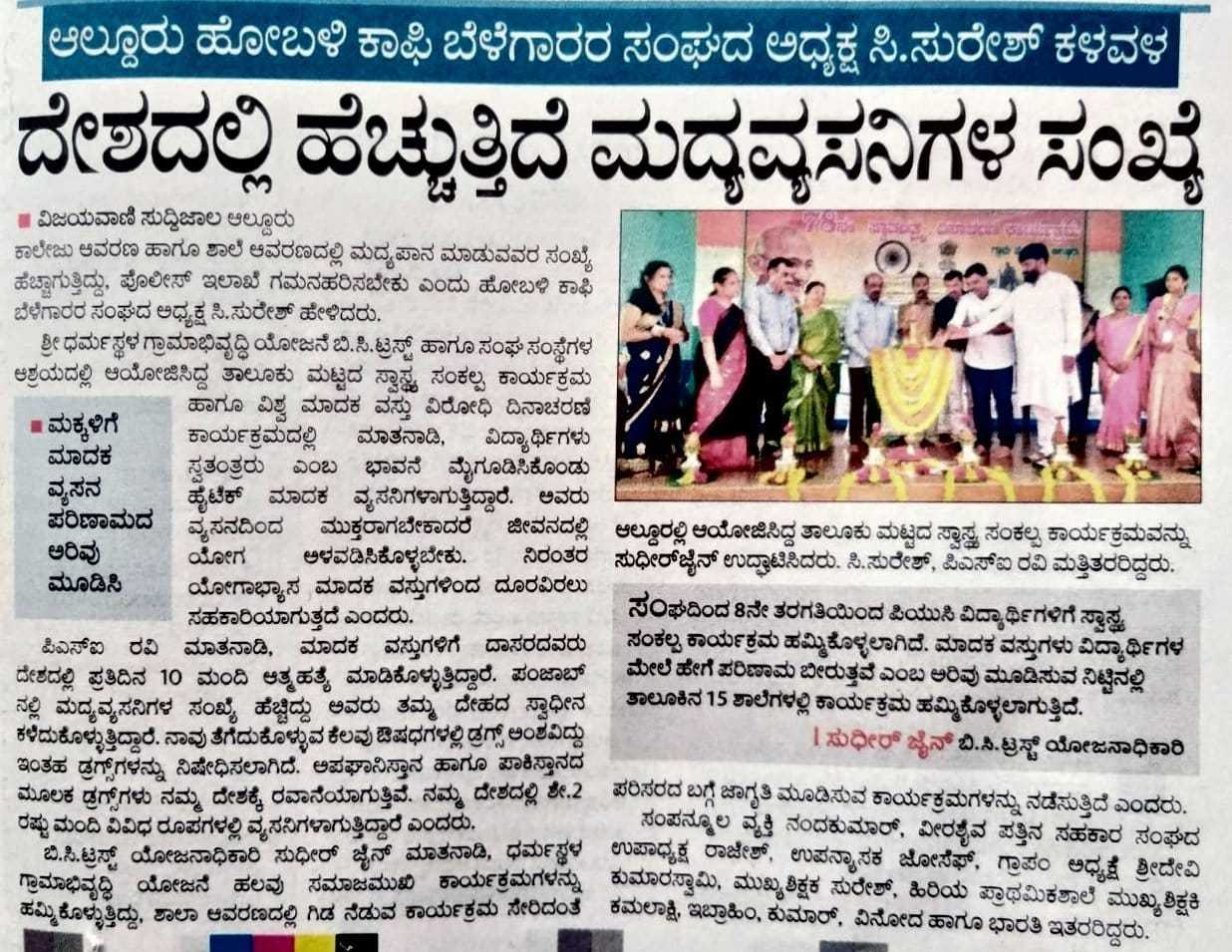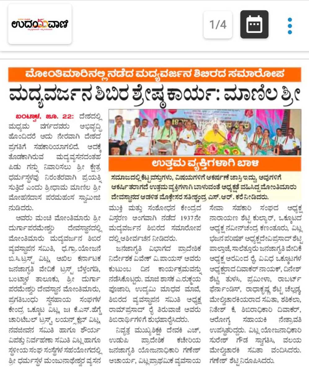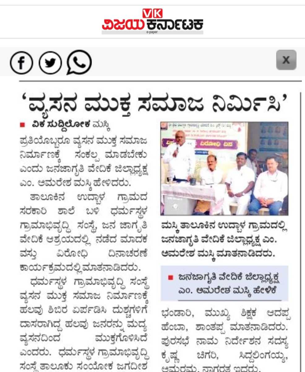 Iam very glad that Janajagruthi Vedike is successfully completing 25 years. It is a sign of progress that this Forum started in 1991 to eradicate bad habits like addiction to liquor has spread throughout the state. Many people joined hands for this purpose and that is how the Forum could achieve this. The path that the Forum has trodden is hard.