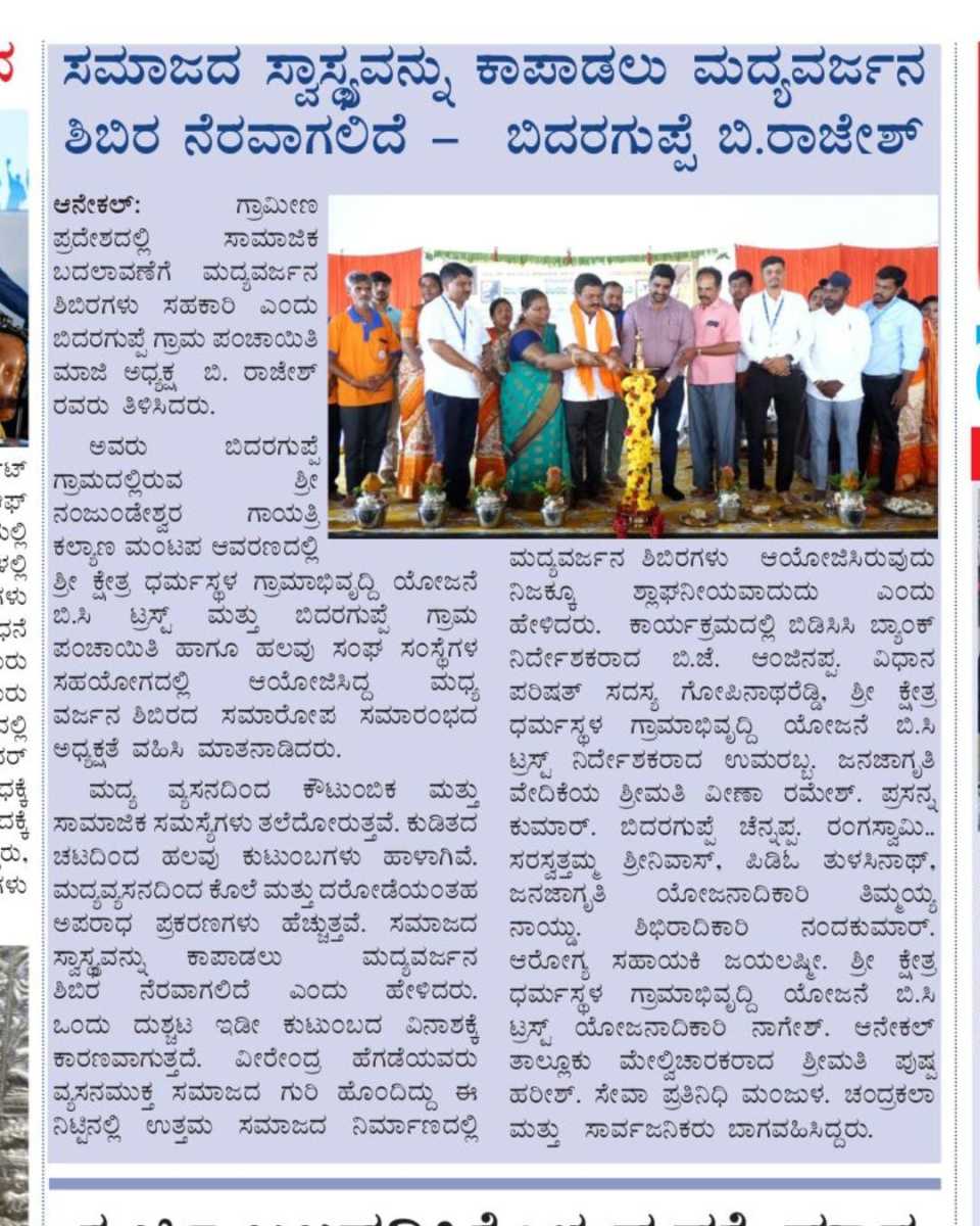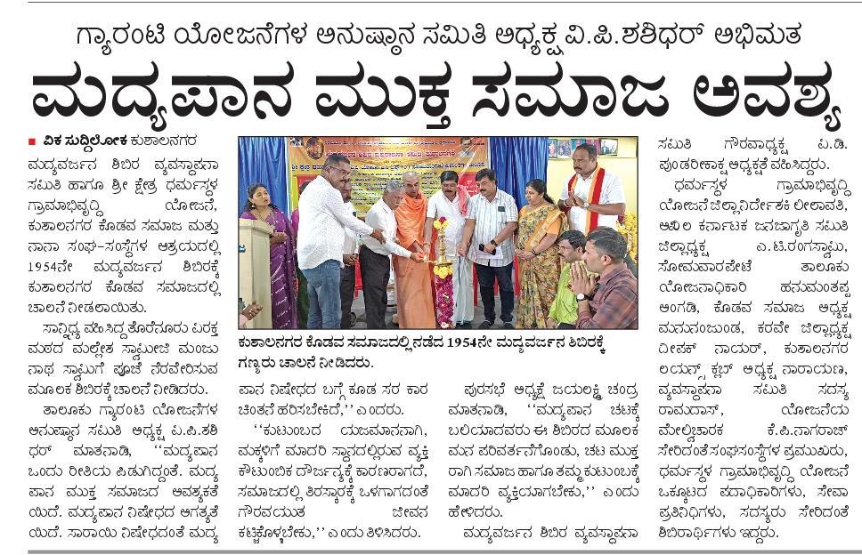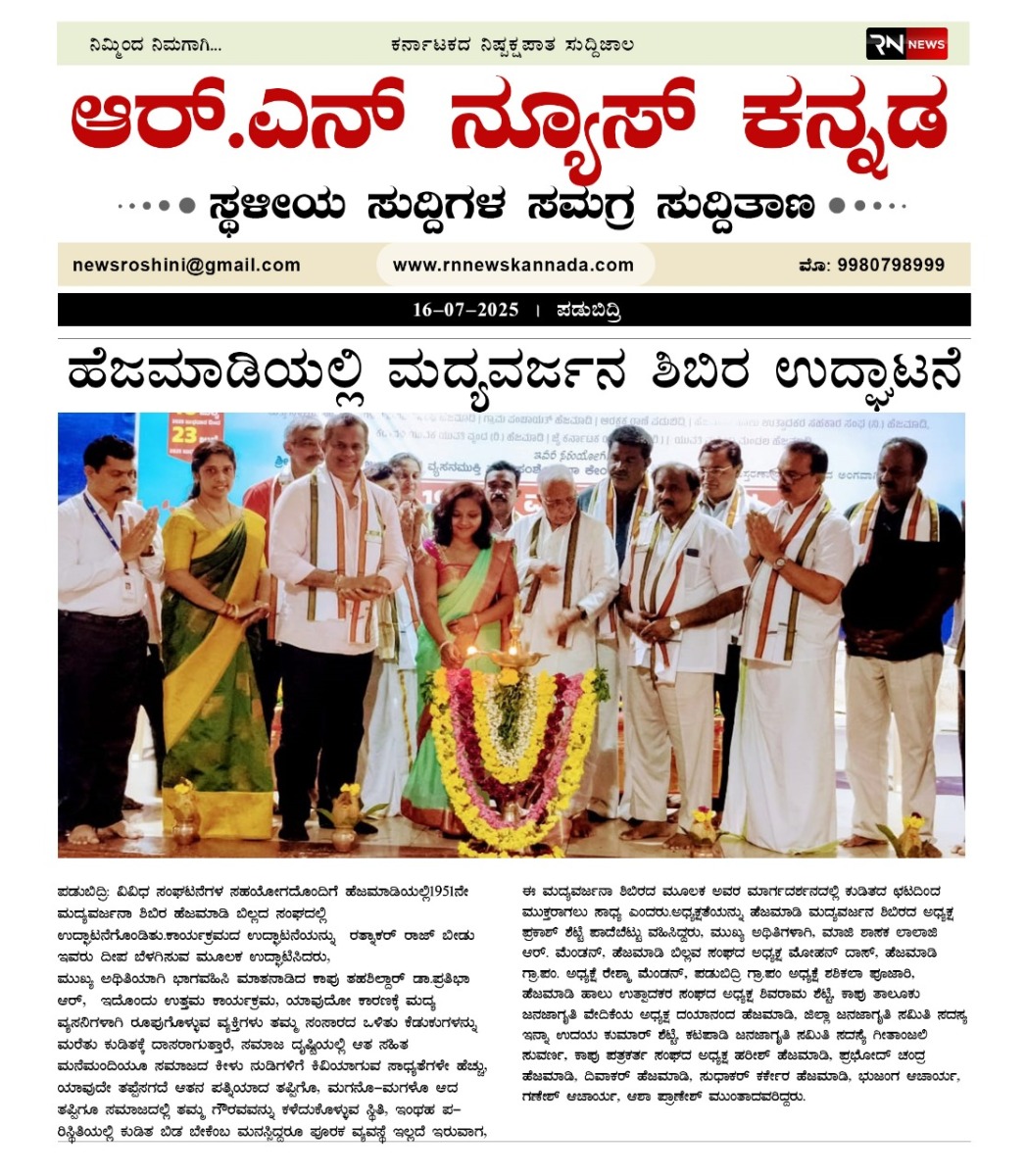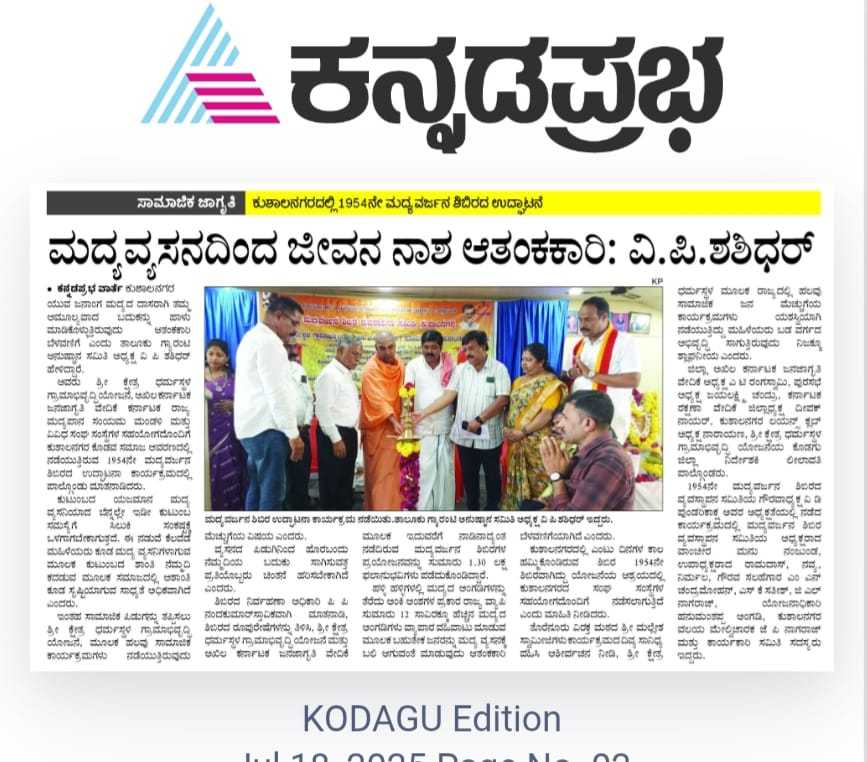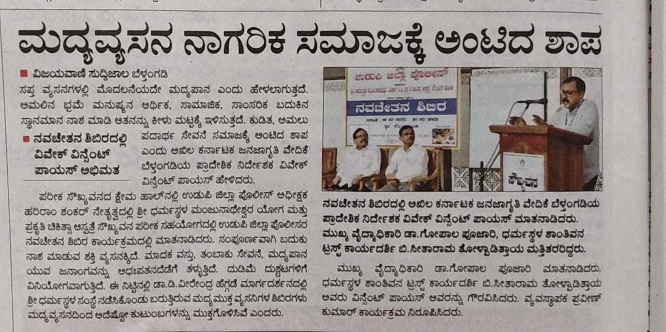 Iam very glad that Janajagruthi Vedike is successfully completing 25 years. It is a sign of progress that this Forum started in 1991 to eradicate bad habits like addiction to liquor has spread throughout the state. Many people joined hands for this purpose and that is how the Forum could achieve this. The path that the Forum has trodden is hard.