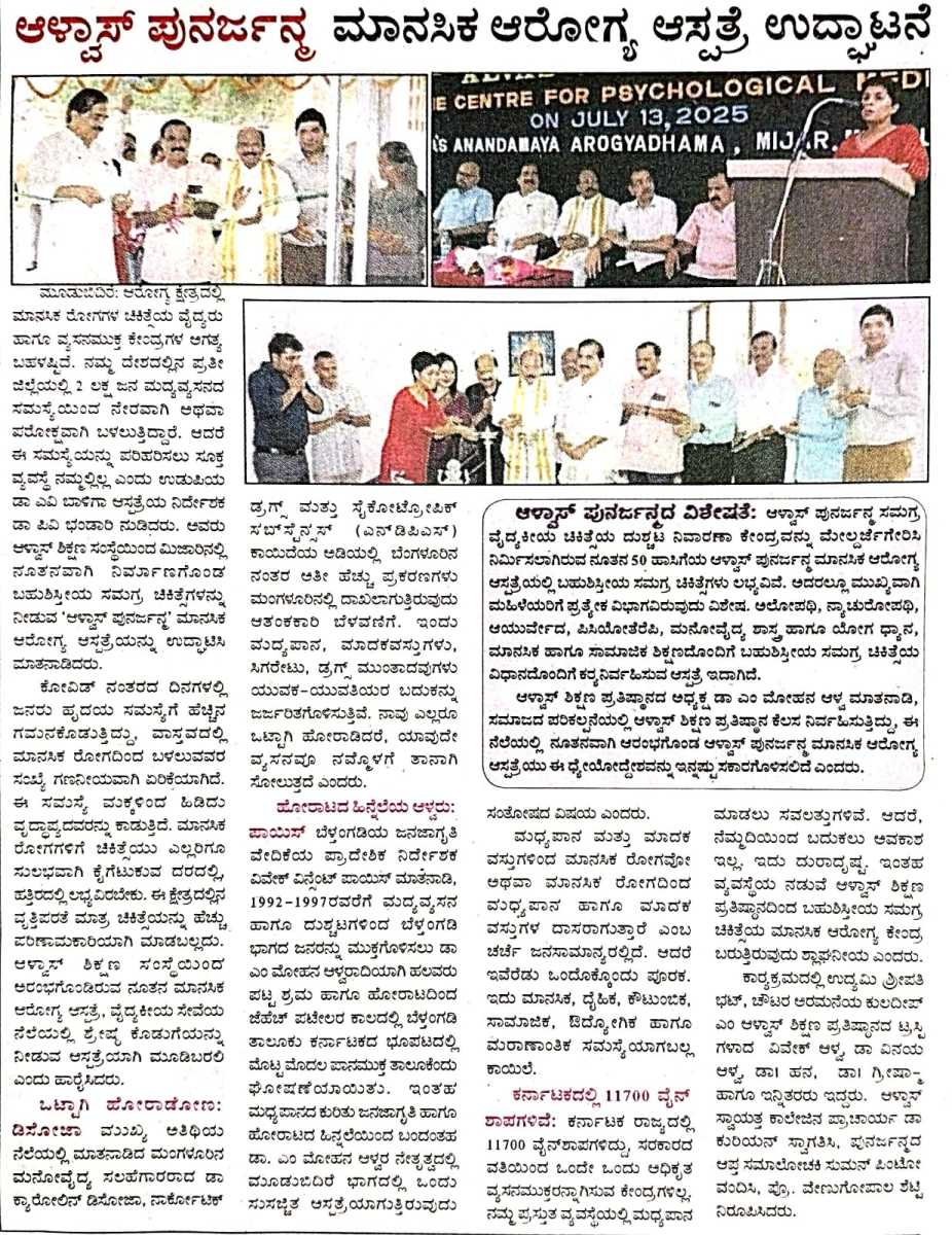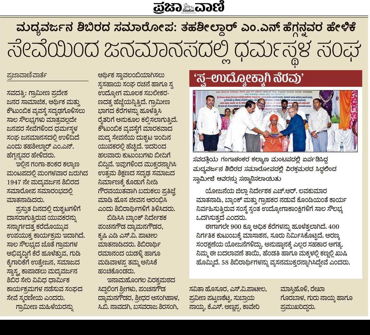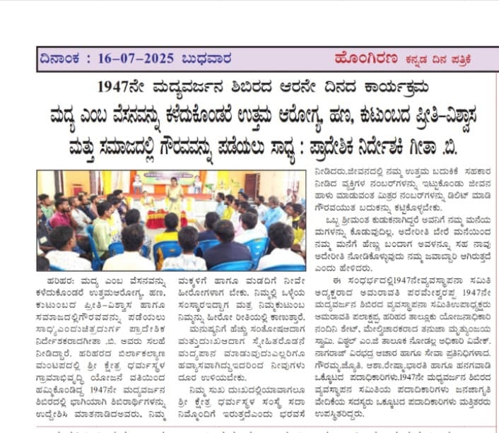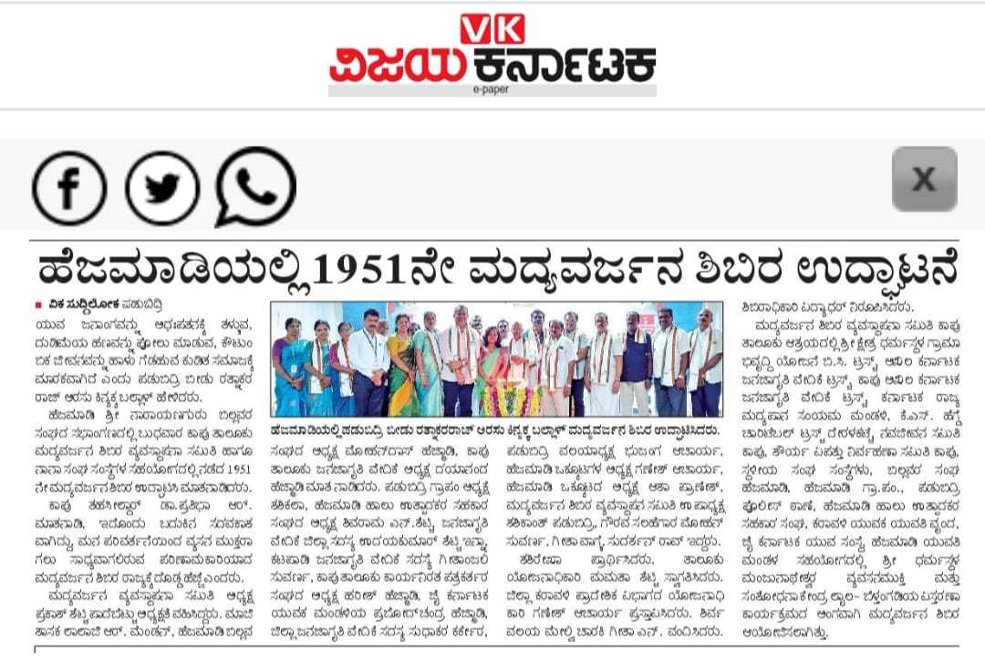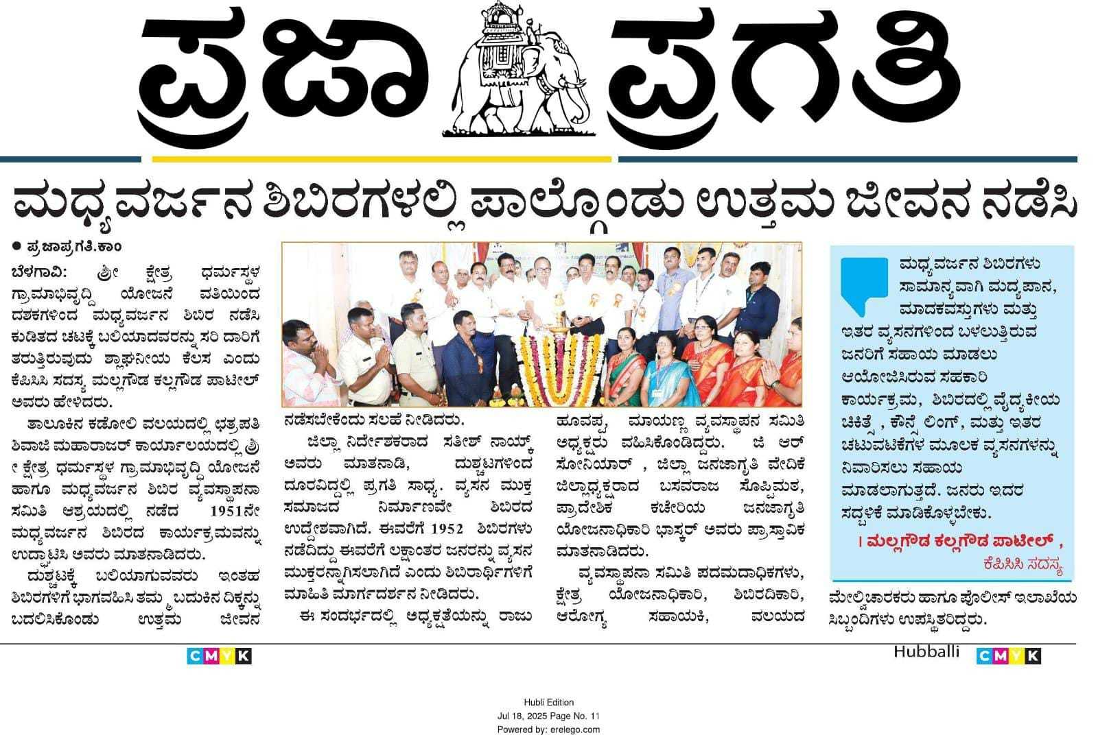 Iam very glad that Janajagruthi Vedike is successfully completing 25 years. It is a sign of progress that this Forum started in 1991 to eradicate bad habits like addiction to liquor has spread throughout the state. Many people joined hands for this purpose and that is how the Forum could achieve this. The path that the Forum has trodden is hard.