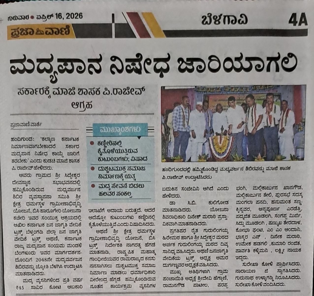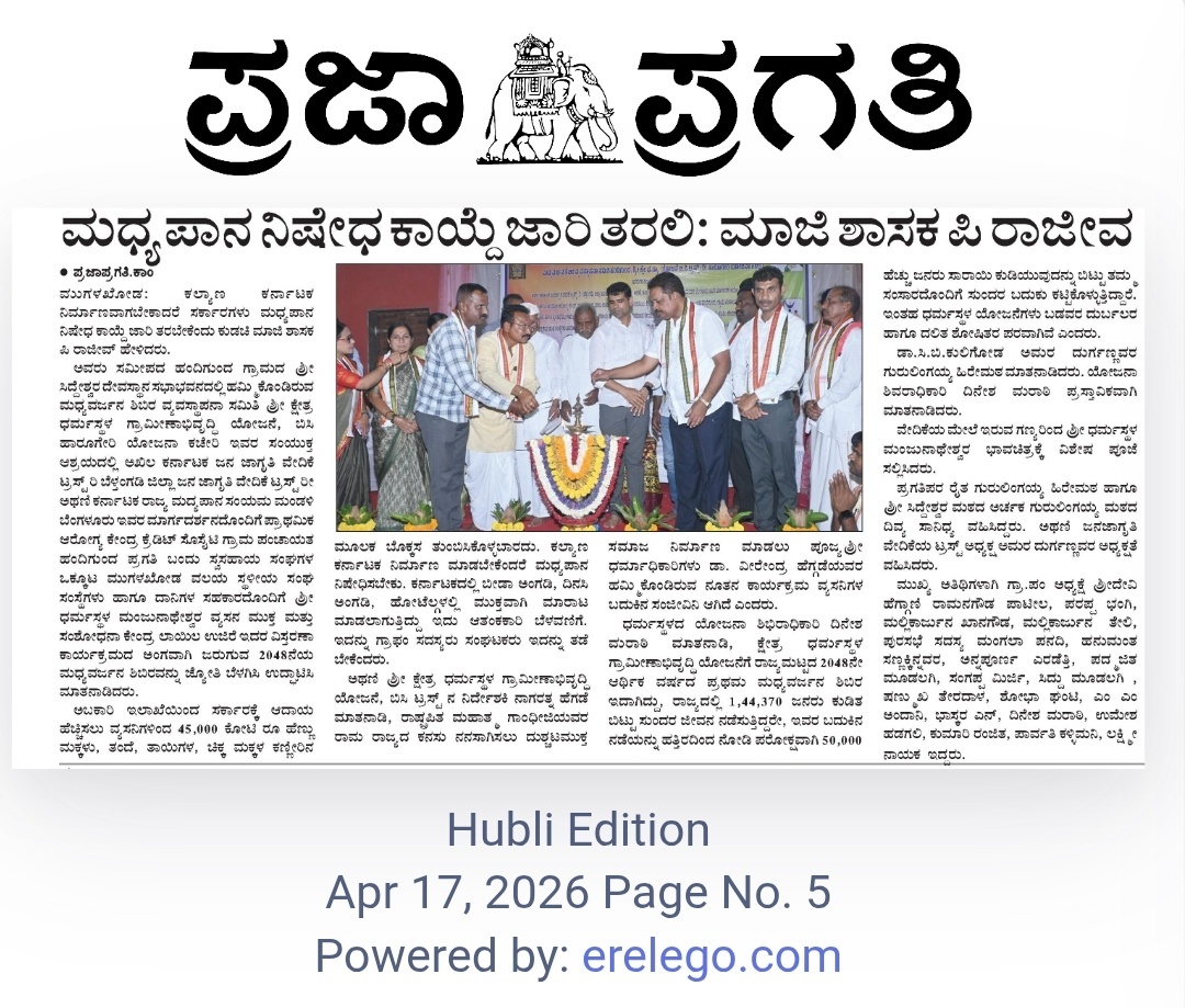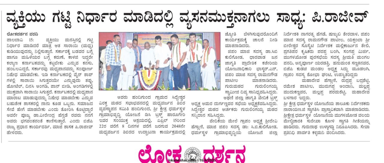 Iam very glad that Janajagruthi Vedike is successfully completing 25 years. It is a sign of progress that this Forum started in 1991 to eradicate bad habits like addiction to liquor has spread throughout the state. Many people joined hands for this purpose and that is how the Forum could achieve this. The path that the Forum has trodden is hard.