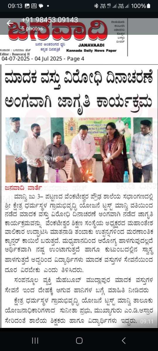 Iam very glad that Janajagruthi Vedike is successfully completing 25 years. It is a sign of progress that this Forum started in 1991 to eradicate bad habits like addiction to liquor has spread throughout the state. Many people joined hands for this purpose and that is how the Forum could achieve this. The path that the Forum has trodden is hard.