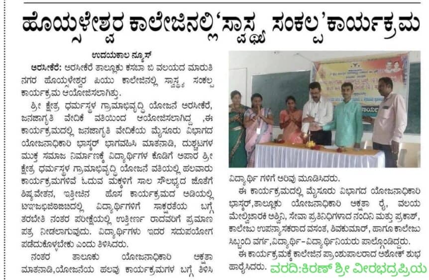 ಹೊಯ್ಸಳೇಶ್ವರ ಕಾಲೇಜಿನಲ್ಲಿ ಸ್ವಾಸ್ಥ್ಯ ಸಂಕಲ್ಪ ಕಾರ್ಯಕ್ರಮ