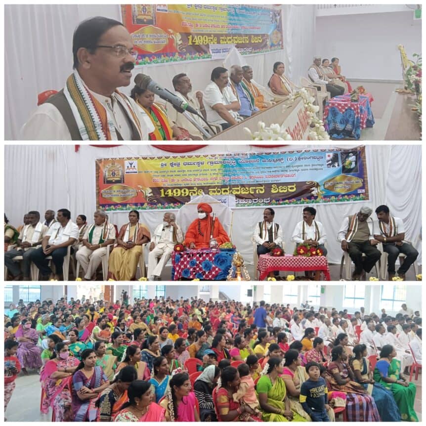 ಮದ್ದೂರು ತಾಲ್ಲೂಕಿನ ಬೆಸಗರಹಳ್ಳಿ ವಲಯದ ಸೋಮೇಶ್ವರ ಸಮುದಾಯ ಭವನದಲ್ಲಿ ವಿಶ್ವ ದಾಖಲೆಯ 1500 ನೇ ಮದ್ಯವರ್ಜನ ಶಿಬಿರದ ಉದ್ಘಾಟನೆ