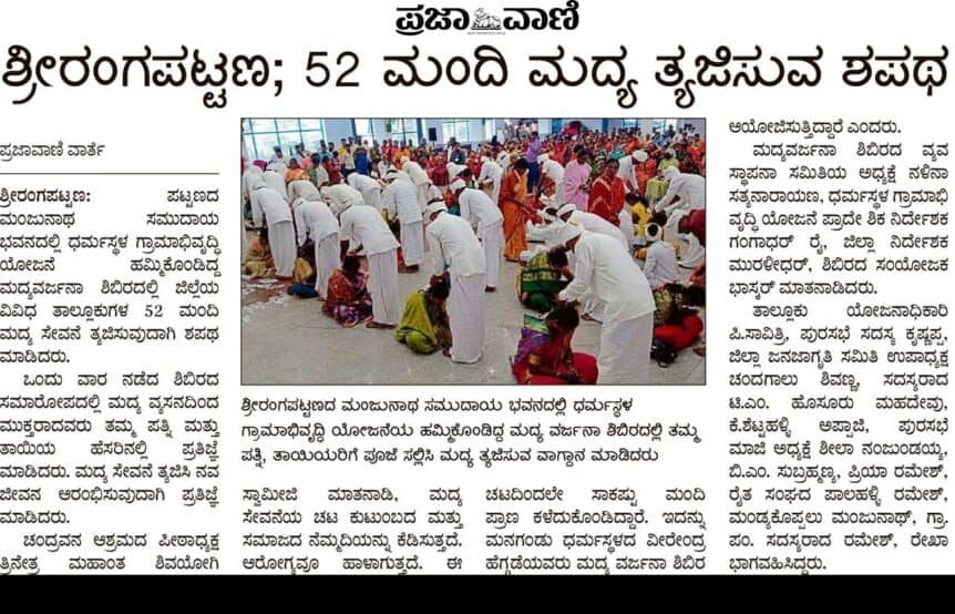 ಶ್ರೀರಂಗಪಟ್ಟಣ : 52 ಮಂದಿ ಮದ್ಯ ತ್ಯಜಿಸುವ ಶಪಥ