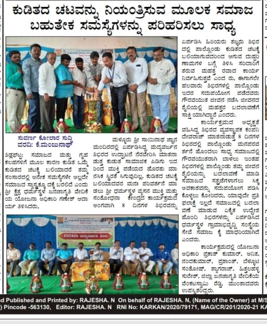 ಬೆಂಗಳೂರು ಪ್ರಾದೇಶಿಕ ವಿಭಾಗದ ಶಿಡ್ಲಘಟ್ಟ ತಾಲ್ಲೂಕಿನಲ್ಲಿ 1503ನೇ ಮದ್ಯವರ್ಜನ ಶಿಬಿರ