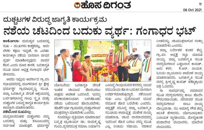 Iam very glad that Janajagruthi Vedike is successfully completing 25 years. It is a sign of progress that this Forum started in 1991 to eradicate bad habits like addiction to liquor has spread throughout the state. Many people joined hands for this purpose and that is how the Forum could achieve this. The path that the Forum has trodden is hard.