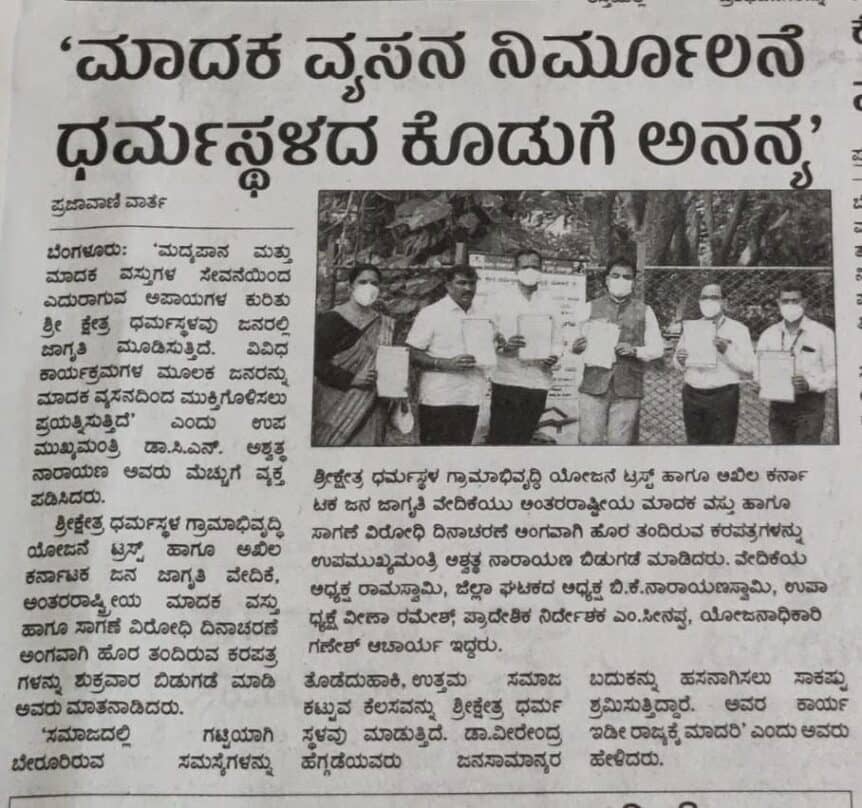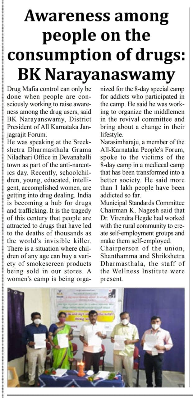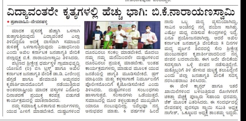 Iam very glad that Janajagruthi Vedike is successfully completing 25 years. It is a sign of progress that this Forum started in 1991 to eradicate bad habits like addiction to liquor has spread throughout the state. Many people joined hands for this purpose and that is how the Forum could achieve this. The path that the Forum has trodden is hard.