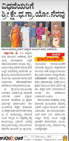 ವಿಧವೆಯರಿಗೆ ಶ್ರೀ ಕ್ಷೇತ್ರ ಧರ್ಮಸ್ಥಳ ಗ್ರಾಮಾಭಿವೃದ್ಧಿ ಯೋಜನೆಯಿಂದ ನೆರವು